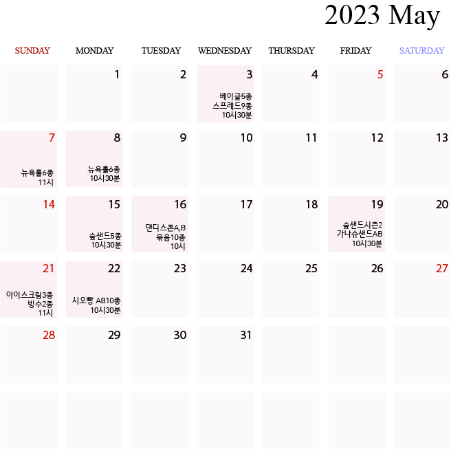 *** º£ÀÌÅ·¹ÙÀÌ×ù 5¿ù ¼ö¾÷°øÁöÀÔ´Ï´Ù. ***º£ÀÌ±Û 5Á¾/½ºÇÁ·¹µå 9Á¾5¿ù 3ÀÏ ¼ö¿äÀÏ 10½Ã30ºÐ´º¿å·Ñ 6Á¾ 5¿ù 7ÀÏ ÀÏ¿äÀÏ 11½Ã5¿ù 8ÀÏ ¿ù¿äÀÏ 10½Ã30ºÐ½£»÷µå 5Á¾ 5¿ù15ÀÏ ¿ù¿äÀÏÁ¾ 10½Ã30ºÐ´íµð½ºÄÜAB ¹À½10Á¾5¿ù16ÀÏ È¿äÀÏ 10½Ã½£»÷µå½ÃÁð2 °¡³ª½´»÷µåAB¹À½ 10Á¾5¿ù19ÀÏ ±Ý¿äÀÏ 10½Ã30ºÐ¾ÆÀ̽ºÅ©¸²3Á¾/ ºù¼ö2Á¾5¿ù21ÀÏ ÀÏ¿äÀÏ 11½Ã½Ã¿À»§AB ¹À½10Á¾ 5¿ù22ÀÏ ¿ù¿äÀÏ 10½Ã30ºÐº£ÀÌÅ·¹ÙÀ̸² ¼ö¾÷¿¹¾à ¹× ¹®Àǹæ¹ýȨÆäÀÌÁö ¼ö¾÷¿¹¾à¹®ÀÇ ¶Ç´Â ºí·Î±×¸¦ ÅëÇÏ¿© ¼ö¾÷¿¹¾à¹®ÀÇ ÇϽñ⠹ٶø´Ï´Ù.º£ÀÌÅ·¹ÙÀ̸² 5¿ù ¼ö¾÷°øÁö ¹× ½Åû ¹Ù·Î°¡±â!!!